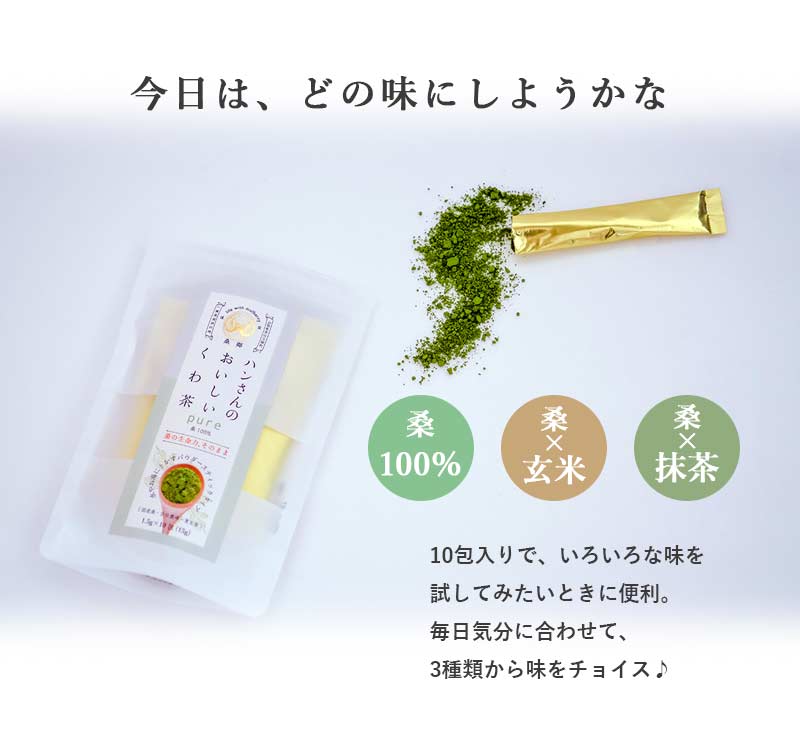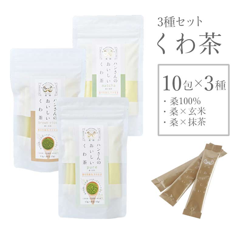 スティック10包 3種セット (山梨県産桑100% 桑抹茶 桑玄米 パウダー) ハンさんのおいしいくわ茶