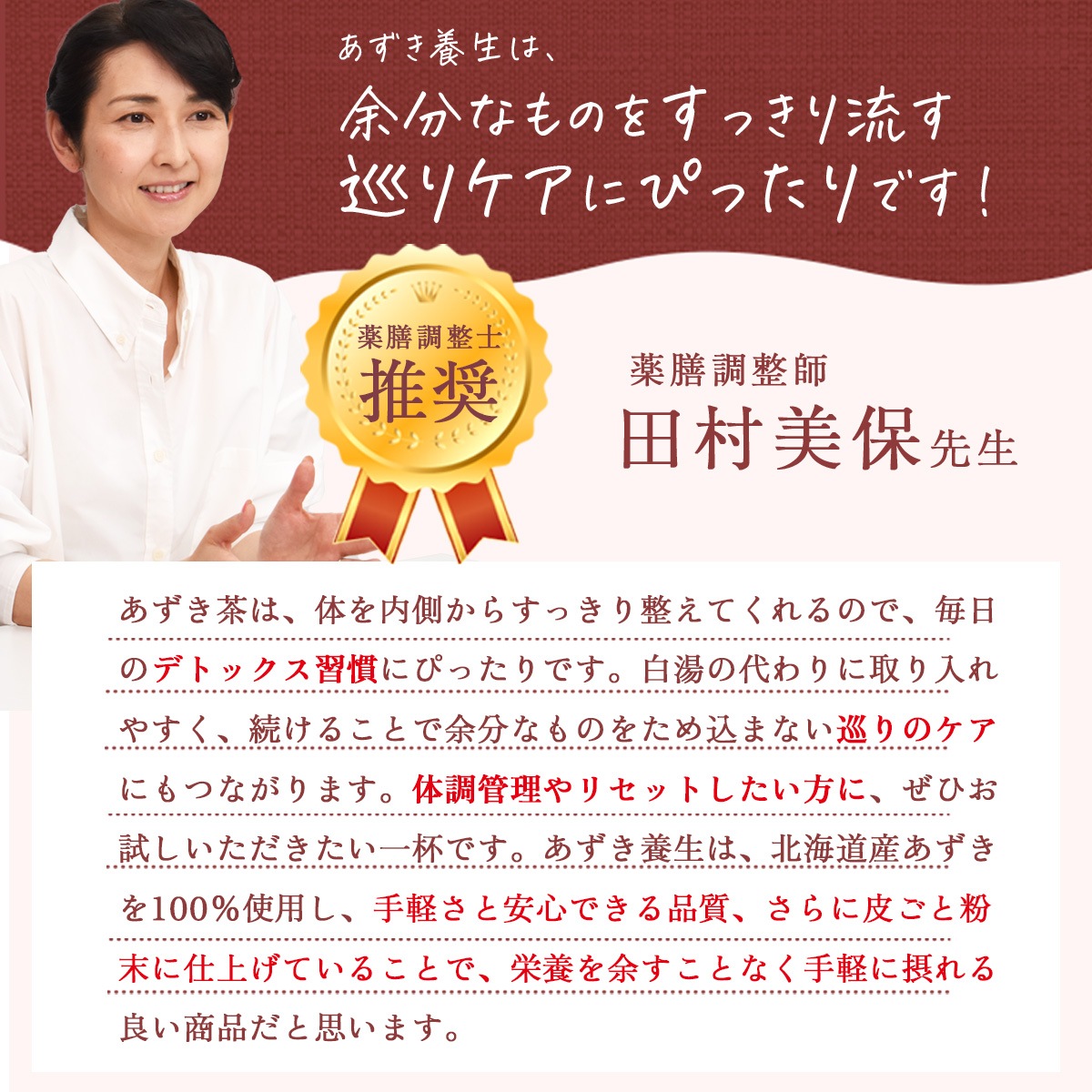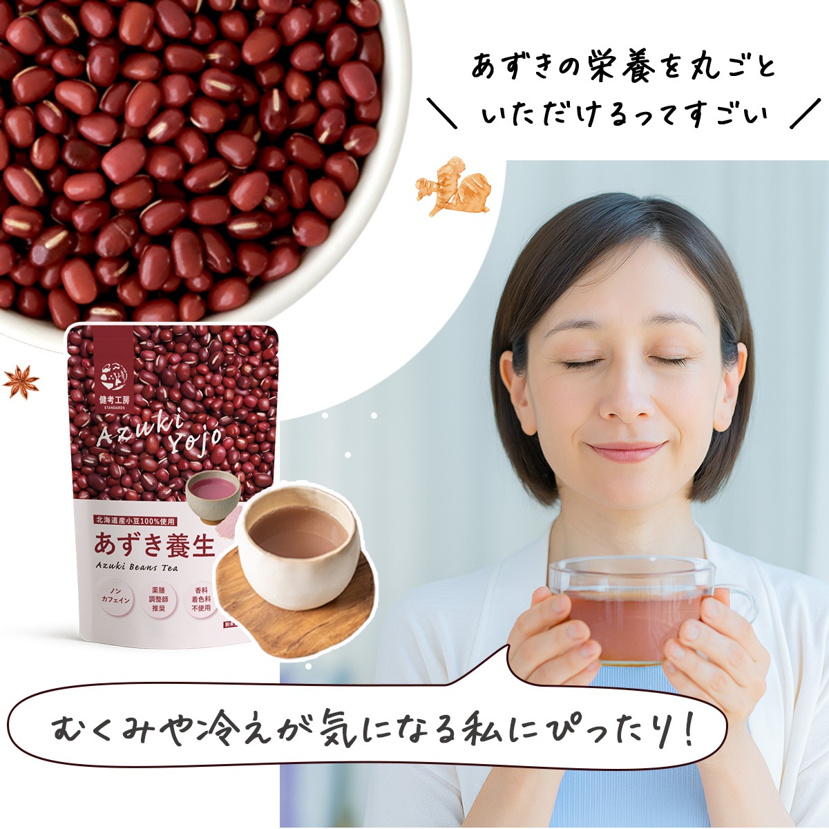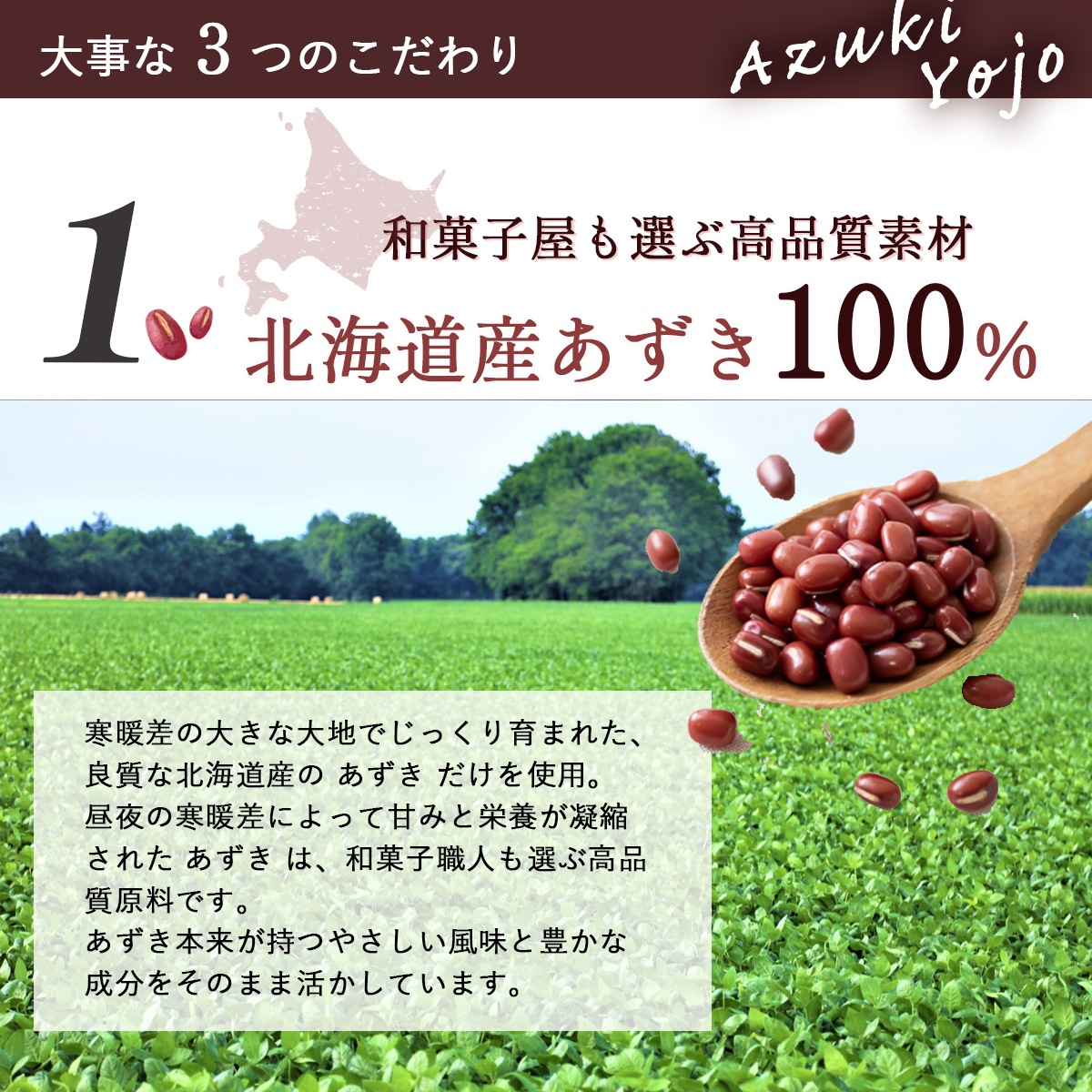 北海道産あずきを100%使用し、皮ごとまるごと粉末化。