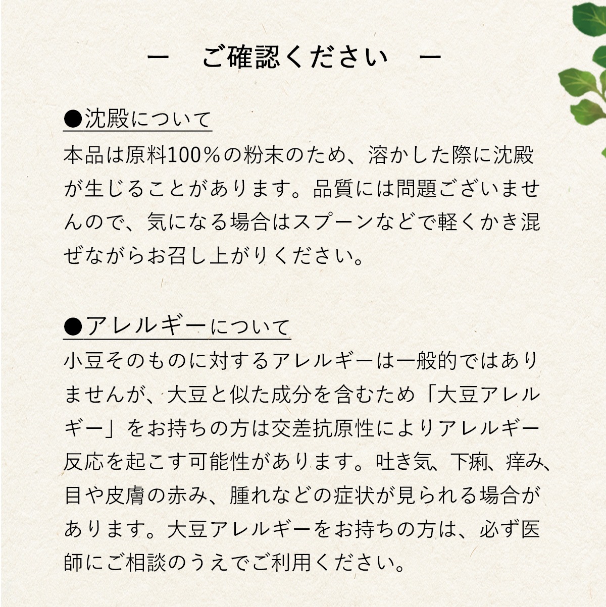 | 保存方法 | 直射日光、高温多湿を避け、常温で保存してください。開封後はお早めにお召上がりください。 |
